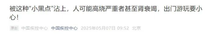 被這種“小黑點”沾上,嚴重可致死!中疾控緊急提醒→