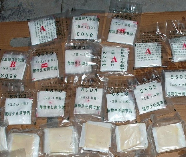 據(jù)嫌犯楊某隆和潘某棉等人交待,沒有添加劑的豆芽往往要10多天才會長成,且細(xì)和短,容易出根,味道有些苦,培育成本高,成活率低。兩團(tuán)伙用石灰粉兌水代替消毒水,添加無根劑、A B粉,用頭孢(抗生素)等添加劑催產(chǎn)。這樣豆芽生產(chǎn)周期只要6天,且顏色白凈,水分豐富,形態(tài)美觀,不易生根,比較壯,沒黑點(diǎn),能夠保持亮度,比較甜。