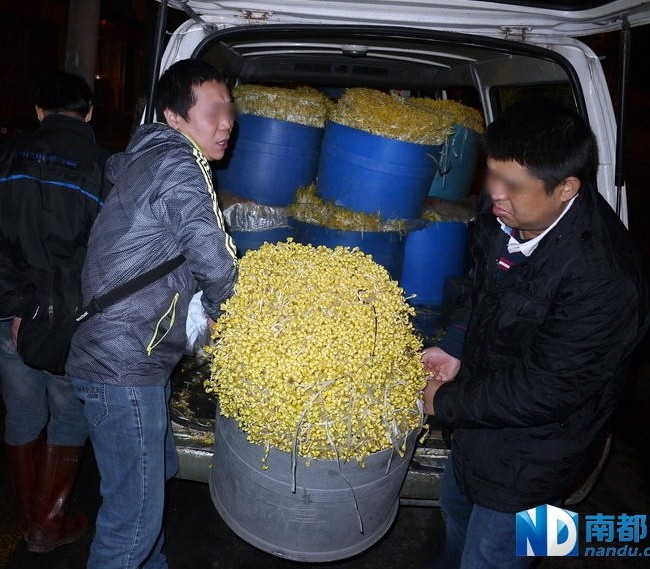 潘某棉一家每天能培育出2000多斤毒豆芽,楊某隆父子每天培育出1000多斤的毒豆芽,分別以0.6-0.9元/斤的價(jià)格銷往海珠、荔灣的批發(fā)市場,再通過各種渠道最終流向了市民的餐桌。