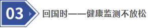 持續(xù)關(guān)注健康狀況:回國(guó)后2周應(yīng)密切關(guān)注身體狀況,避免蚊蟲(chóng)叮咬,如出現(xiàn)相關(guān)癥狀,應(yīng)當(dāng)立即就醫(yī),并向醫(yī)生說(shuō)明旅行史,以便得到及時(shí)的診斷和治療。